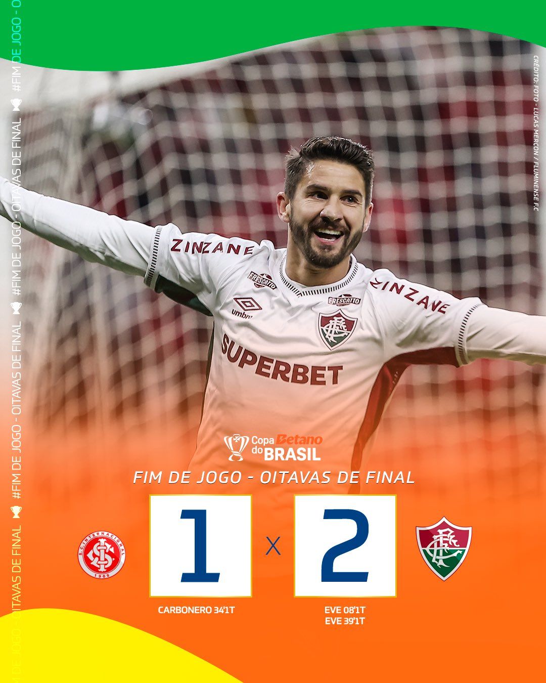 O Colorado empatou com Carbonero aos 35’ do 1T, mas aos 40’, após uma linda jogada de Serna, Eve pegou essa aqui de primeira e marcou um lindo gol para dar a vantagem ao Flu e aliviar a pressão sobre Renato Gaúcho.