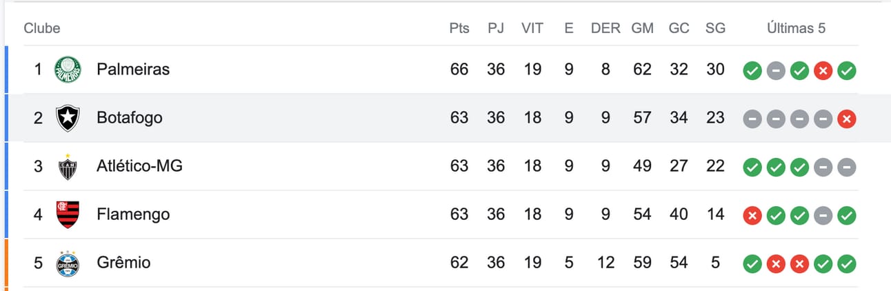 Hora de fazer conta. São 6 pontos em jogo, e Botafogo — assim como Atlético/MG e Flamengo — precisam tirar 4 pontos.