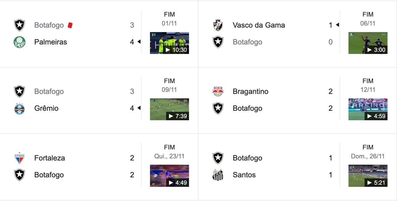 Se você quer ficar ainda mais impressionado, isso tudo aconteceu em único mês. Mas calma que não acabou… Até porque hoje estamos em dezembro, mas o último jogo do alvinegro carioca, ainda era no mês 11.