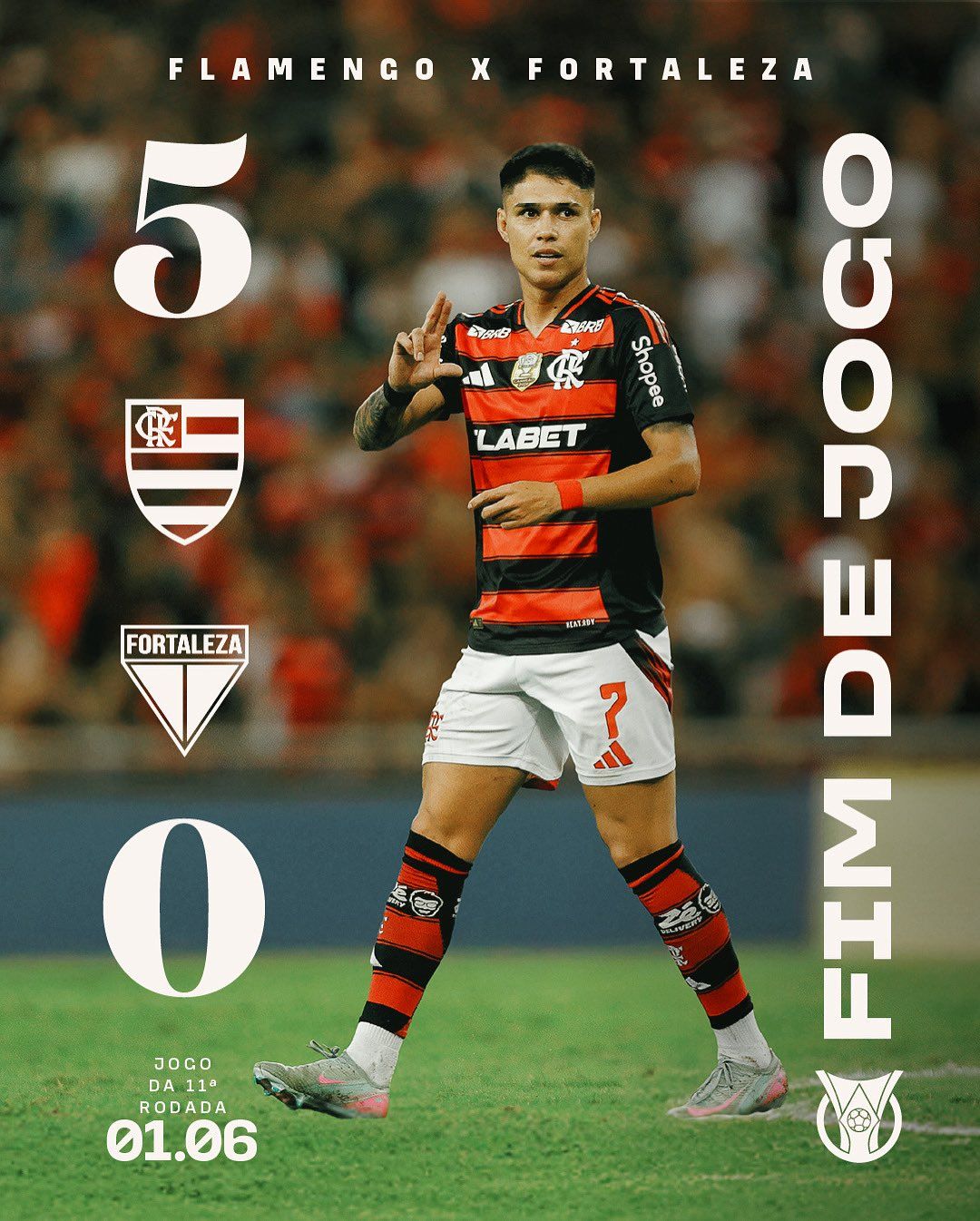 CINCUM? No último jogo antes da viagem para o Mundial, o Mengão goleou o Fortaleza no Maraca.