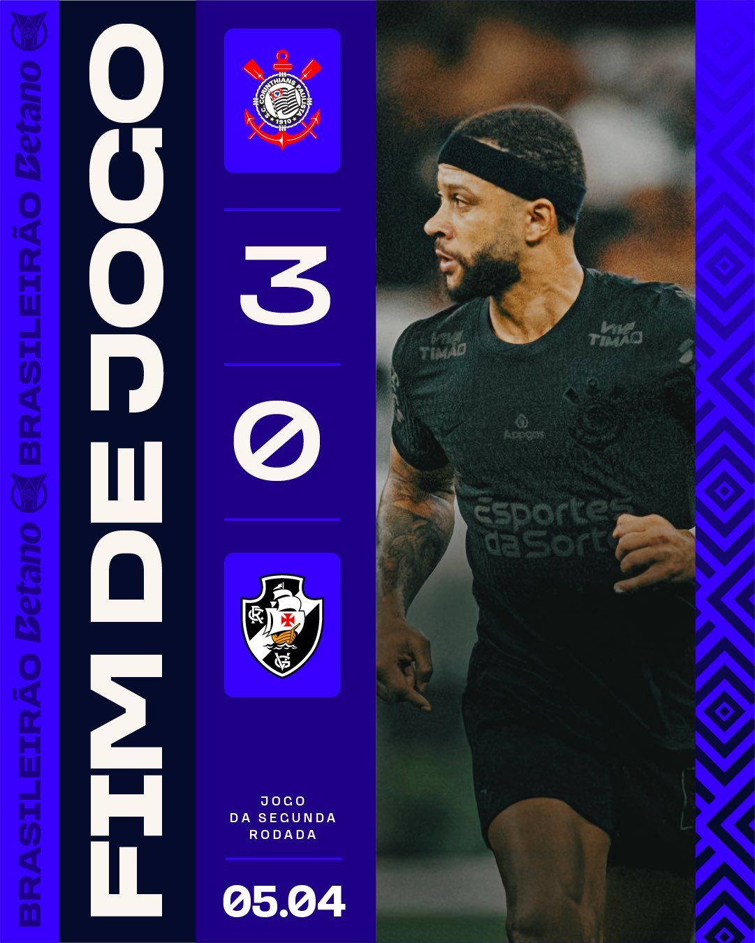 Ficou barato pro Vascão. O Corinthians venceu na Neo Química Arena por 3 a 0, com show de Depay — mas sem subir na bola. risos.