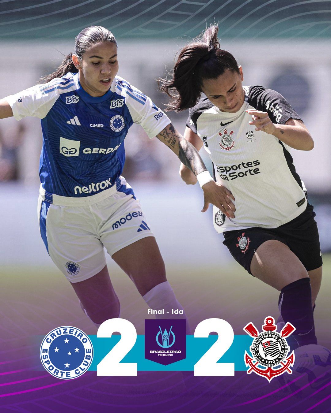 No jogo de ida da final do Brasileirão Feminino, Cruzeiro e Corinthians empataram diante do novo público recorde do futebol feminino em MG: 19.175 torcedores.