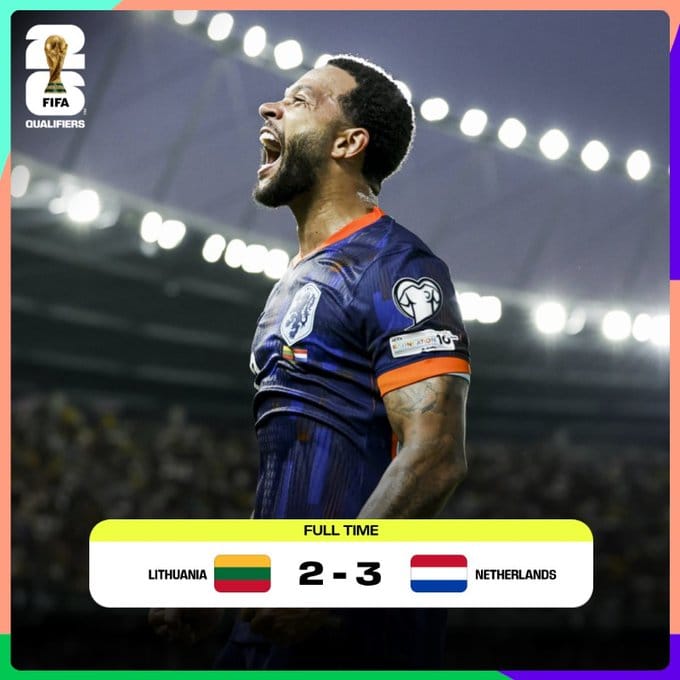 O Memphinhos tava on e a Laranja Mecânica começou abrindo 2 a 0 contra a Lituânia — o primeiro gol foi dele, que se tornou o maior artilheiro da história da seleção com 51 gols.