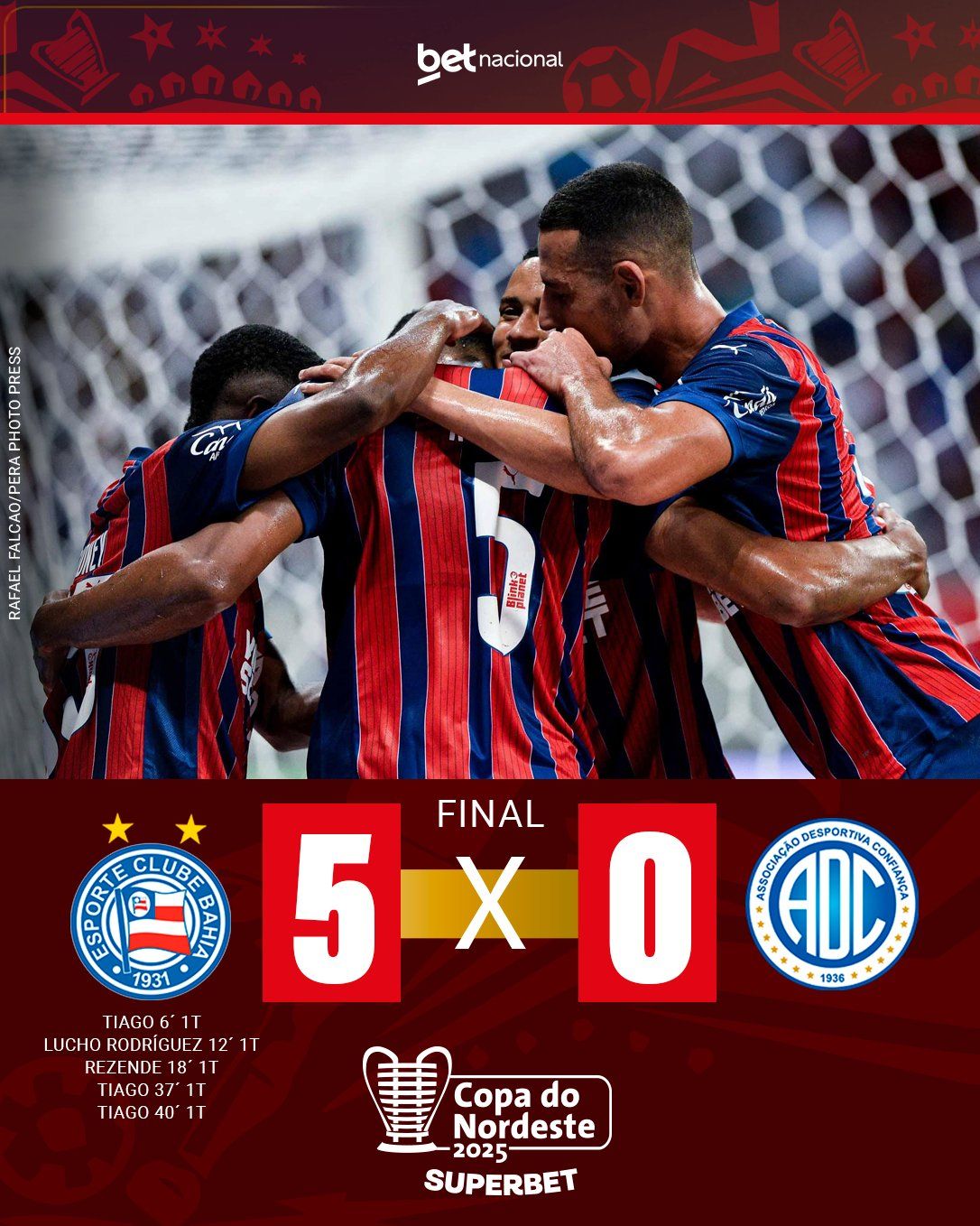 O Bahia é agora o maior campeão isolado da Copa do Nordeste, superando o rival Vitória, que tem 4 conquistas.