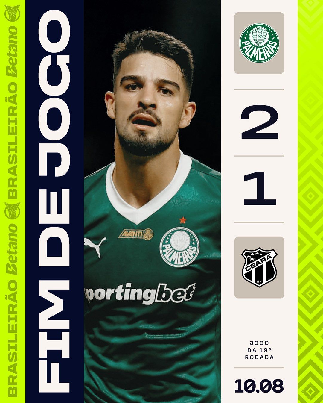 O Verdão precisou só de 2 minutos para virar: Flaco López marcou de pênalti aos 22’ e Vitor Roque aos 24’.