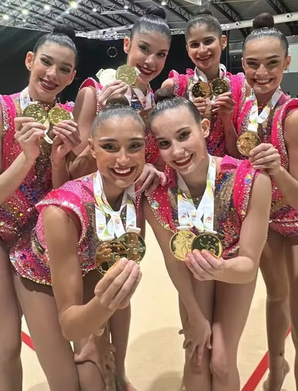 🥇🥇🥇 Se o título no futebol de areia já não é novidade, as conquistas do Brasil na Copa do Mundo de Ginástica Rítmica são — e vieram em grande estilo, com 3 ouros conquistados, em 3 possíveis, na etapa disputada em 🇵🇹 Portimão.