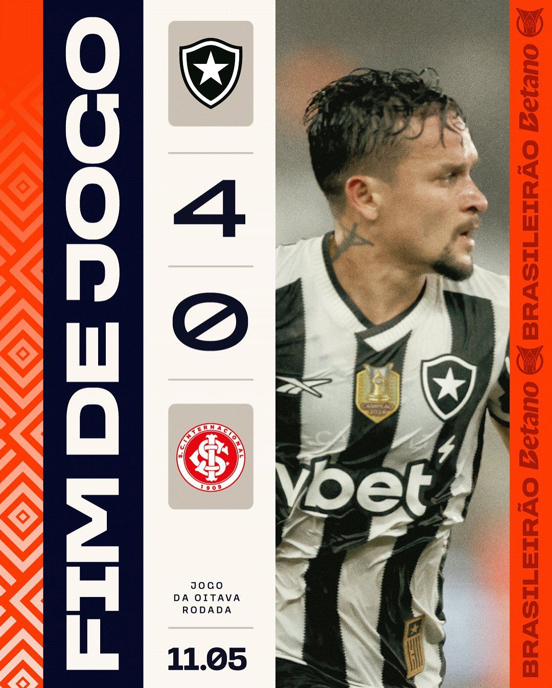 Gols bonitos e show no placar. Foi assim que o Botafogo construiu a goleada sobre o Internacional.