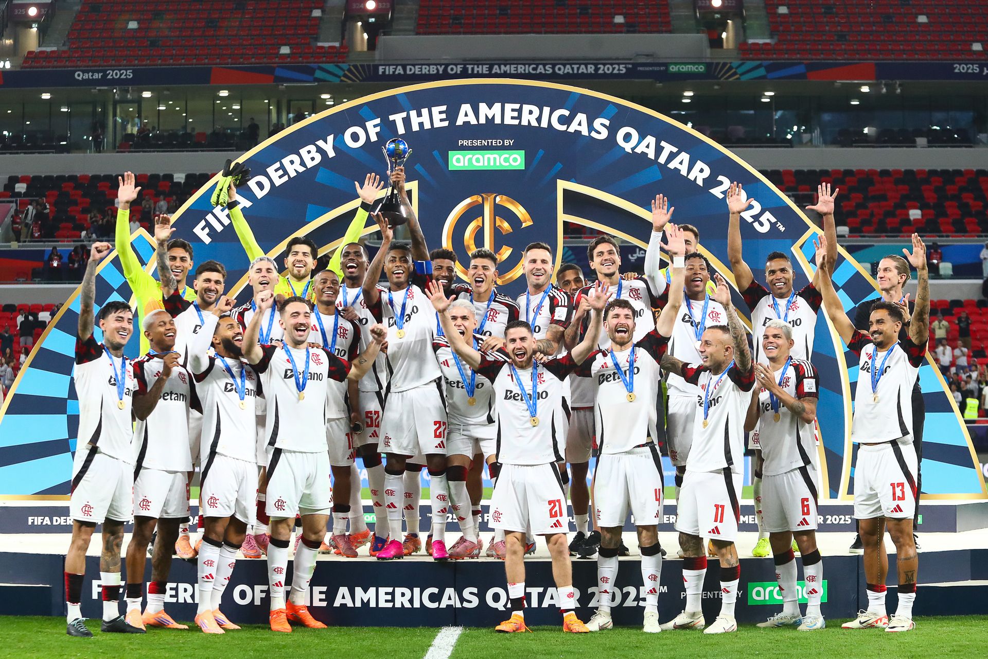 Colecionando taças. O Mengão venceu o Cruz Azul-MEX por 2 a 1, com gols de Arrascaeta, e conquistou o troféu do Dérbi das Américas — nome bonito para as quartas de final da Copa Intercontinental. (Melhores momentos).