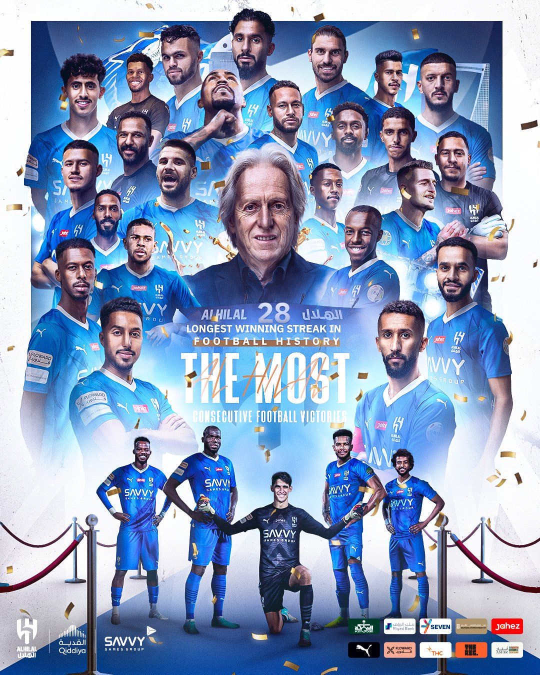 O time do Mister conseguiu! Com a vitória sobre o Al-Ittihad nessa terça-feira pelo placar de 2 a 0, o Al-Hilal quebrou um recorde histórico ao se tornar a equipe com mais vitórias consecutivas de todos os tempos do futebol mundial em partidas oficiais.