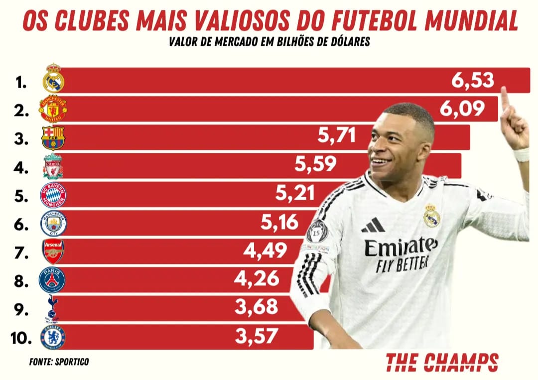 Esse modelo econômico sem controle eficaz de gastos salariais, ajuda a explicar por que os clubes de futebol não figuram entre as 20 franquias esportivas mais valiosas do mundo — dominadas por times da NFL, que operam com teto salarial rígido e recebem cerca de US$ 400 milhões por ano em direitos de TV.