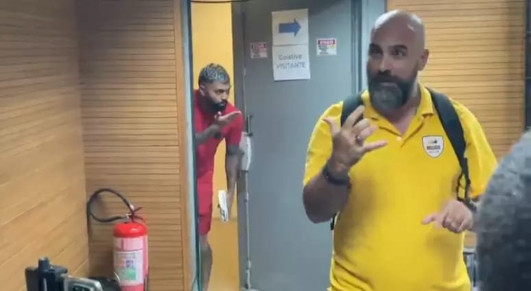 É uma loucura. Após a derrota para o São Paulo, Gabigol foi até a sala de imprensa do rival para mandar um beijinho para seu ex-treinador, Dorival Júnior.