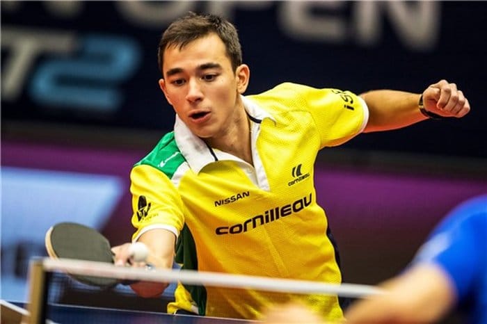 Ao alcançar as quartas de final, o brazuca venceu o então #1 do mundo, 🇨🇳 Fan Zhendong. Contudo, menos de 5 horas após o desgastante duelo, ele já foi escalado para o duelo contra 🇯🇵 Tomokazu Harimoto, nº 5 do mundo à época, e de apenas 15 anos.