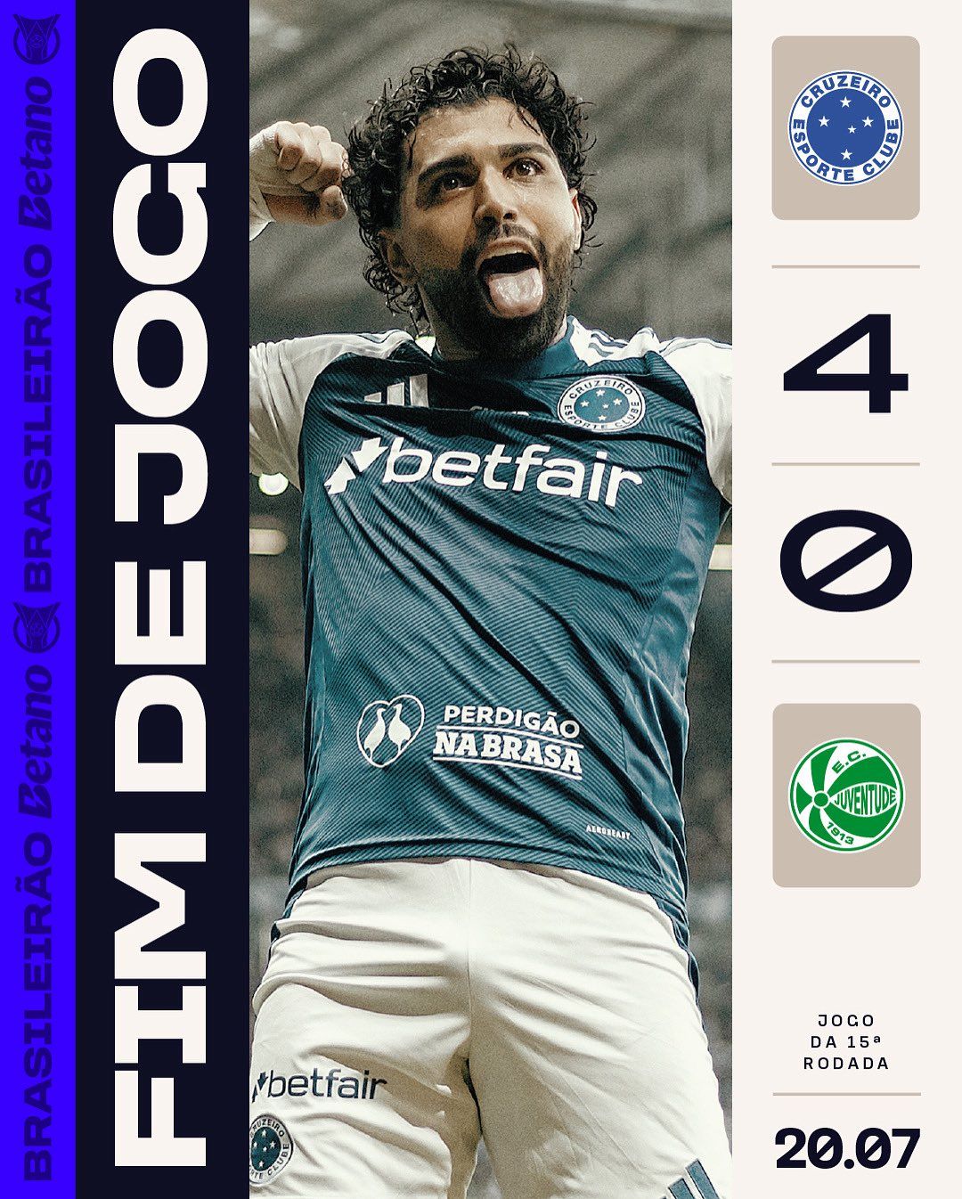 A doce rotina azul. Com a 3ª vitória seguida, o Cruzeiro segue isolado na liderança do BR25.