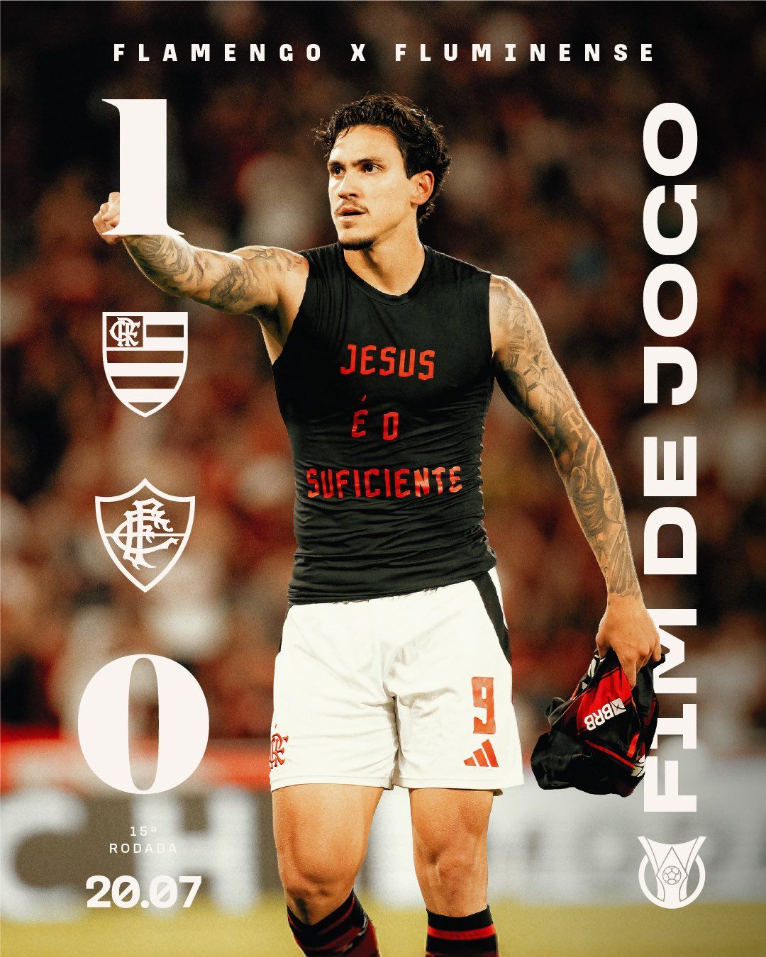 Pedro, cria de Xerém, entrou no lugar de Arrascaeta aos 28’ do 2T. Aos 39’, após escanteio e desvio de Léo Ortiz, fez o gol da vitória.