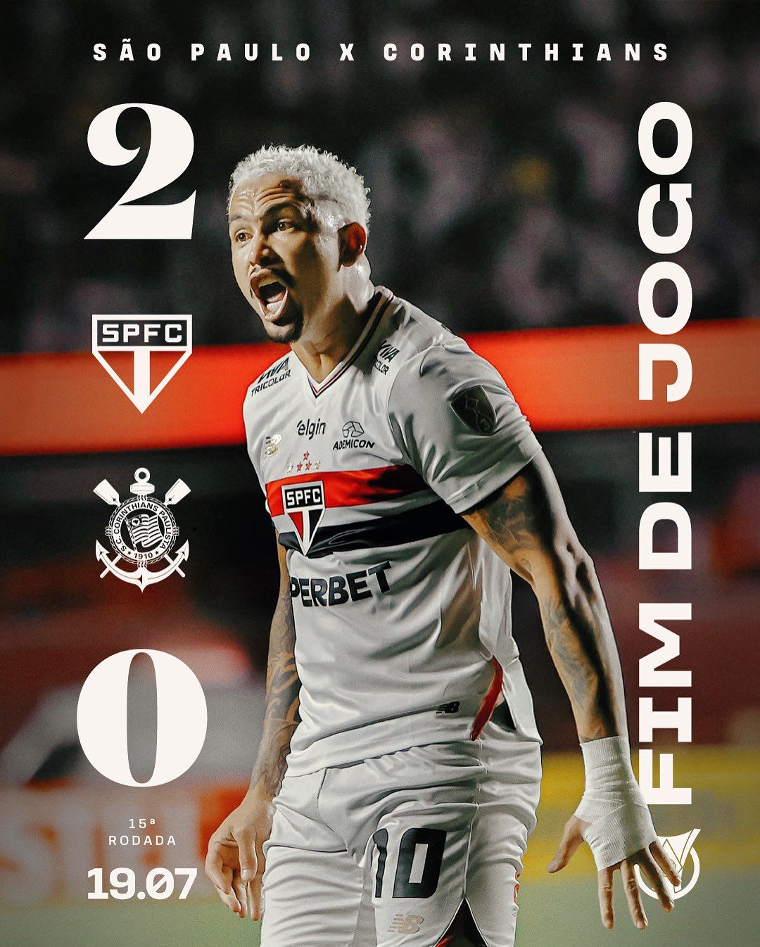 Com o resultado, o São Paulo chegou a 15 anos sem perder para o Corinthians em clássicos em casa pelo Brasileirão. Sim, 15 anos.