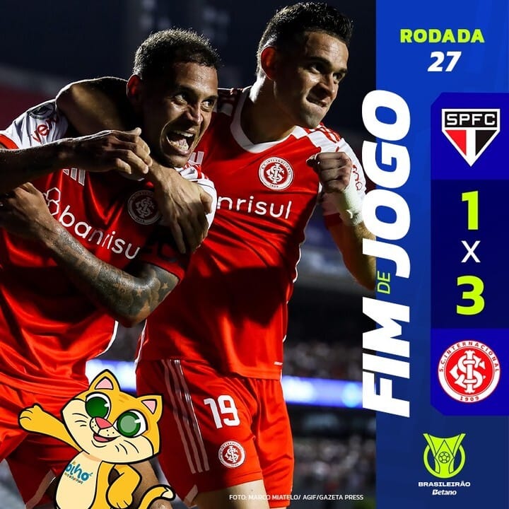 O resultado: Derrota por 3×2 para o tricolor gaúcho, que se afasta da zona de rebaixamento.