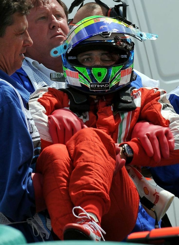 Em 2009, veio o maior susto da carreira: uma mola solta do carro de Barrichello o atingiu no capacete durante o treino para o GP da Hungria. Massa foi hospitalizado, passou por cirurgia e ficou em coma induzido, perdendo o resto da temporada.